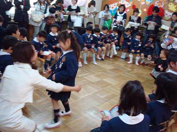 今日は、”ばら組”の最終日です!最後の日は、みんなで「また会える日まで!」を歌いました。(また〜〜会える日♪〜〜)先生から、スミレ組で使う絵の具と新しいお帳面をもらって、(最後に)kanaと一緒に記念写真を撮りました。それからお友達のアリちゃん、ケンちゃん、ハナちゃんとも(またまたkanaも一緒に)写真を撮りましたが、次は同じクラスになれるかな!?
