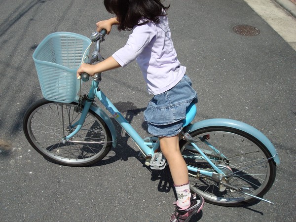 さっちゃんの自転車もだいぶん小さくなってきて、もう少し大きな自転車がほしいところ。。。。でも、ある程度大きいのじゃないと、また買い換えないといけないので、思案していると、パパ会社の子供さんが20インチの自転車を処分するとのことで、これは絶好のチャンス!!(しかも女の子用)ということで、早速もらっちゃいました。色は(聞いていなかったのですが、)ブルーで、さっちゃんもお気に入り?の色だったようです。今度はカギも付いているので無くさないようにしなくては・・・(多分、無くすと思いますが・・・)カギのキーホルダーは、わざわざ買ってくれたようで、感謝々です。