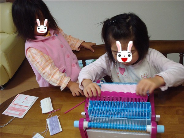 手編み機の子供版です!カナも興味津々です!
