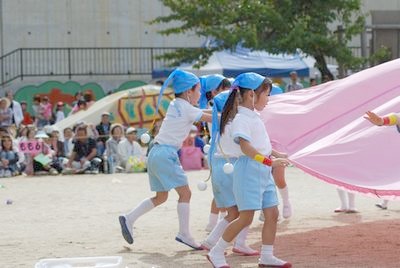 今年は、kanaもかけっこに参加するので、2人揃っての出場になります。今年のsachiの出場種目は、「パラバルーン」、「親子競争」、「かけっこ」の3種目!!午前中に「パラバルーン」と「親子競争」をやり、親子競争は見事2組が1位を獲得!(なぜかBGMに"銭形平次"や"必殺仕事人"のテーマ曲が流れてましたが・・)昼からのかけっこはトラックを半周するコースで、今年は男子と一緒に走るのでさすがのsachiもちょっと勝てませんでしたが、スタートの構えはなかなか早そう!!