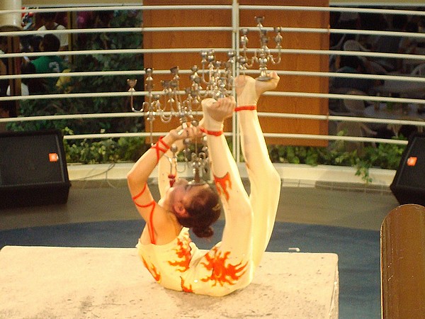 イス四個の上で倒立!