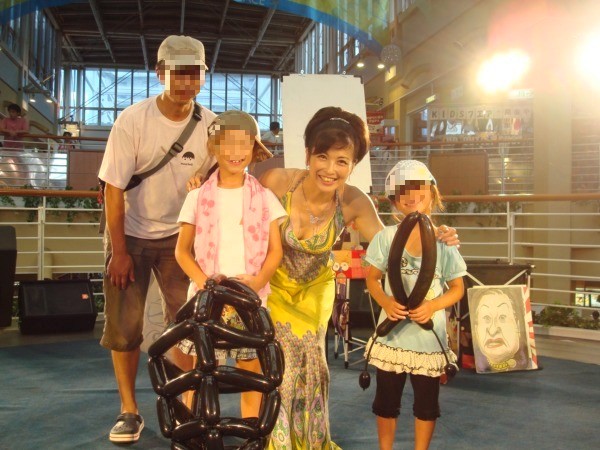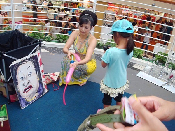 結局、サチカナは似顔絵を描いてもらえなかったので、その替わりに風船を作ってもらいました。この他にアリのシッポの風船ももらったので、帰りの車中でず〜と風船遊びに没頭していました。