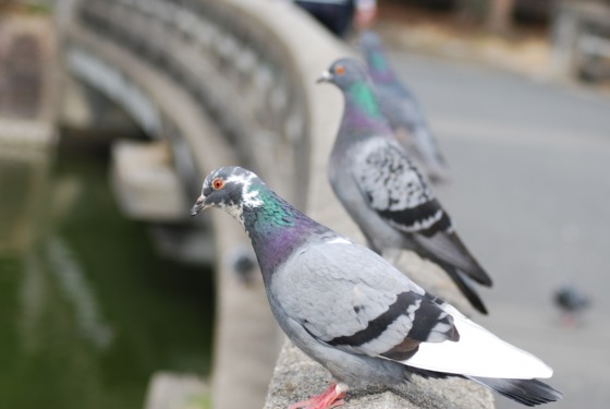 顔が斑模様なドバトです。羽根も真っ白です!
