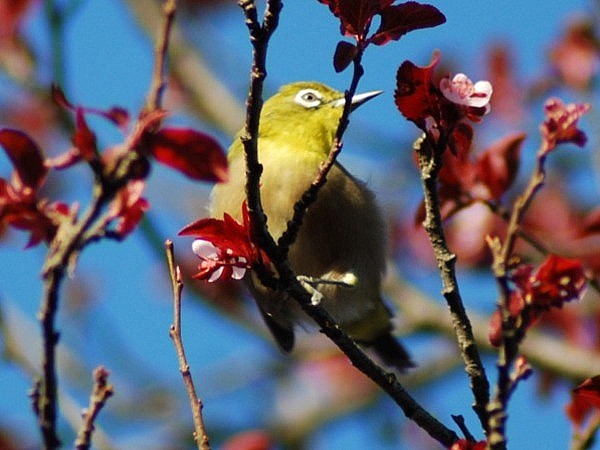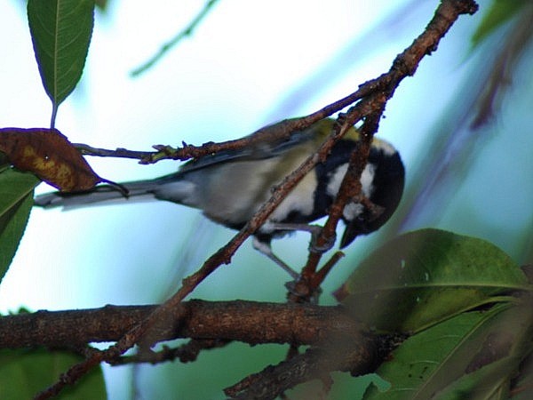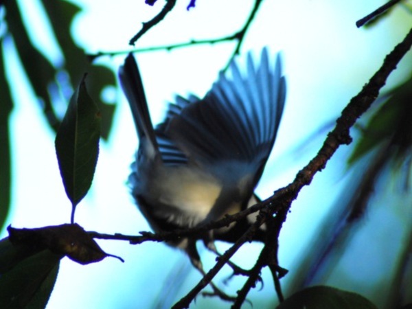 シジュウカラを発見。ちょっと暗いので撮るのが大変