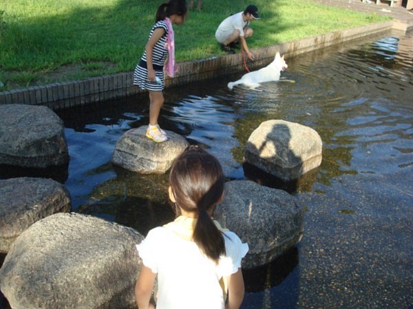どうも川に入りたかったようです。飼い主の言うこと無視して川に浸かってます。