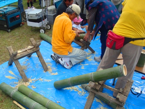 まずは、竹を適当な長さに切断します